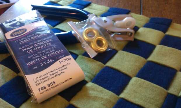 -Doble pliegue quilt vinculante en un color nada. (Alternativamente, popelina o algunas otras stiff-ish cosas que haría un bonito borde)
