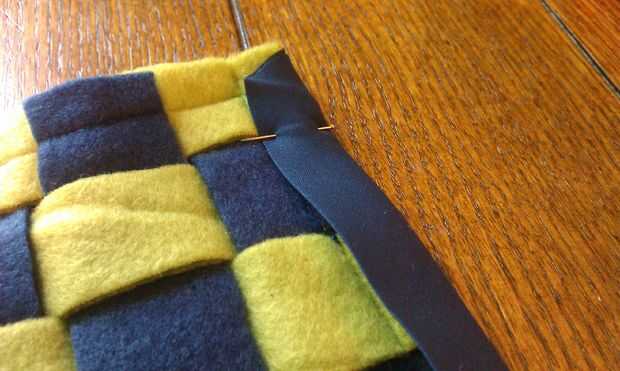 Perno de la fijación de tejido en el lugar sobre el borde, con la hamaca se intercala en el redil. Usé unos 3 pines por lado.