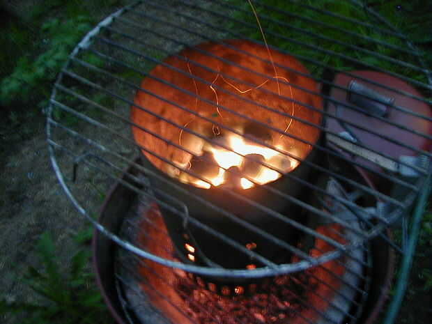 La idea es utilizar un pequeño fuego intenso a la parrilla de la hamburguesa, utilizar un lugar de starterand de carbón una rejilla en la parte superior. Se podría hacer uno de una grande o un pedazo de tubo de humos etc. con perferations para la ventilación. El motor de arranque de carbón de leña tiene una reja para separar el carbón de leña, en la parte superior, amontonados encima de periódicos en la parte inferior para a partir los trozos de carbón, aunque probablemente podría salirse con sólo apilar el carbón sobre el periódico en un cilindro de metal ror puede con orificios de ventilación. Luz los periódicos para obtener el charcaols iniciado. Cuánto desea dar su hamburguesa y cuántos que voy cocinando el infierno es la cantidad de carbón necesario, al menos de cerca de 1/3 o más completo. Si tienes acceso a una manguera de aire del compresor puede acelerar Inicio las brasas con algo de aire.