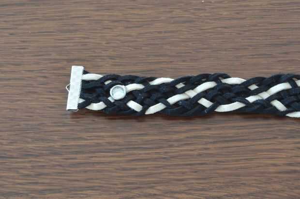 Fije coincidirá con el anillo del salto de un lado y un anillo de saltar a otro lado para completar la pulsera. Su glamour pulsera 8 strand trenzado está ahora lista para la temporada de otoño.