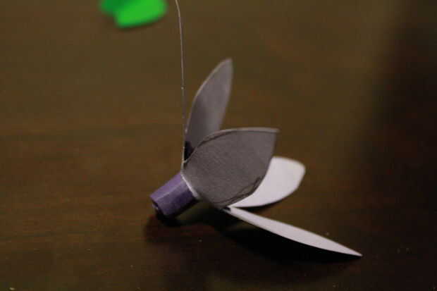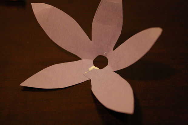 Pegar el laminado interior de parte en el orificio de la flor. Es bueno hacerlo cuando el pegamento esté todavía un poco húmedo, para que pueda ajustar el exterior para el tamaño de la pieza enrollada.