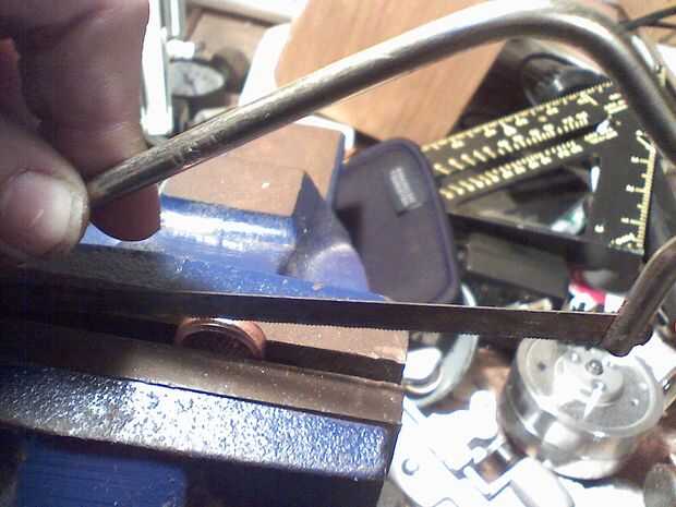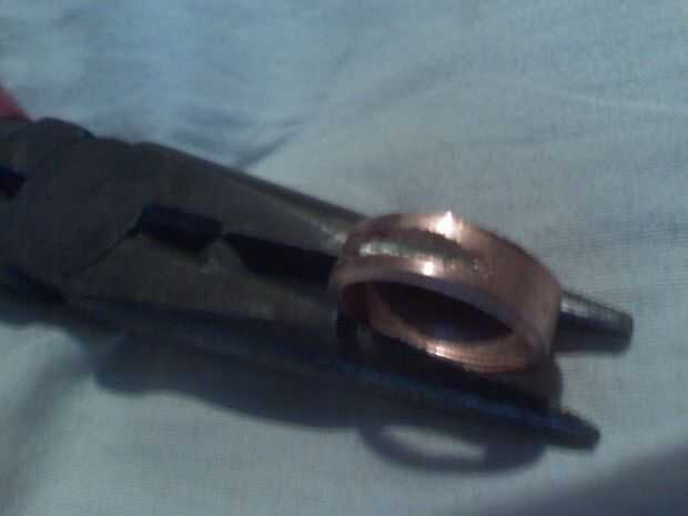 Toma tú eres la herramienta de corte y corte una pequeña ranura para el anillo entrar sólo lo suficientemente grande como para que el anillo se ajusta, porque si es demasiado grande, se deslizará hacia fuera.