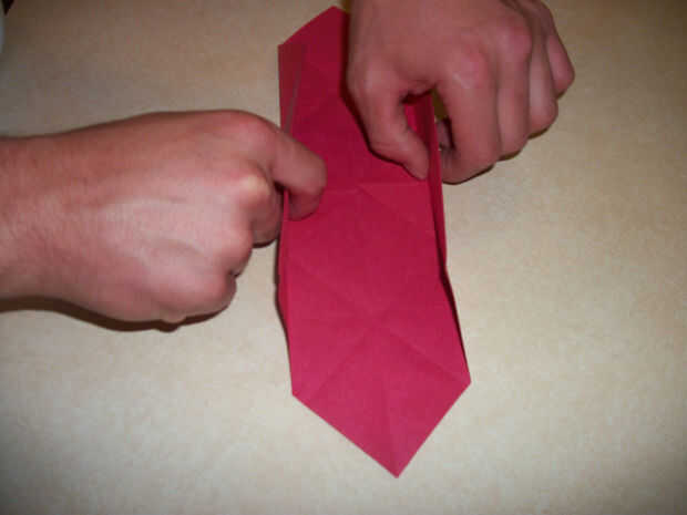 9. ahora abren a mitad de camino los pliegues izquierdos y derecho que dobla hacia el centro en el paso 7.