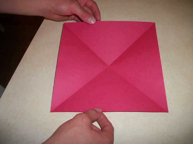4a. a continuación, vuelva a abrir el papel y dobla el papel diagonalmente al revés mientras alineando los bordes del papel.