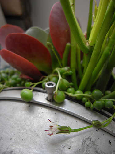Esta sembradora tiene también una característica vertical. No quiero dejar ese fin cubierto, por lo que moda una forma de plantar algunos sedums en la cara vertical de la sembradora.