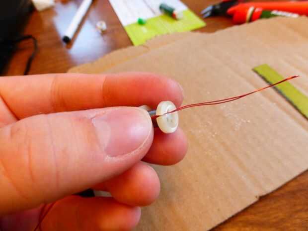 Coloque el bucle en la ranura hecha en uno de los botones en su base, con cerca de dos pulgadas de fuera. Esto hará más fácil al viento, manteniendo el alambre se mueva.