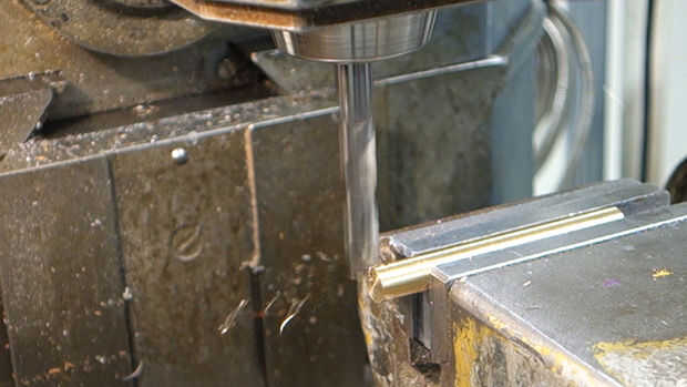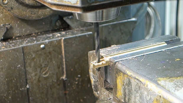 La barra se hizo de la acción de barra de latón que fue dada vuelta al tamaño de un torno. Una vez fuera fue molido abajo en cada extremo y perforado con los agujeros que el bar y partes movibles y lo suficientemente grande como para tener espacio para los tornillos de montaje.