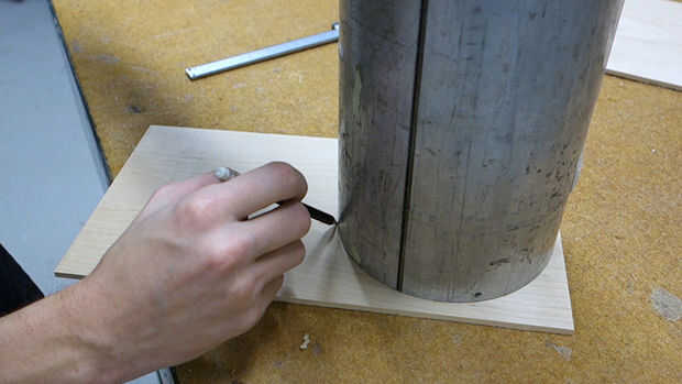 Decida cómo quiere el cuerpo de la kalimba y dibujar un círculo sobre la madera. Cuando usted corta, sólo aproximadamente recorta el círculo, no corte hasta la línea.