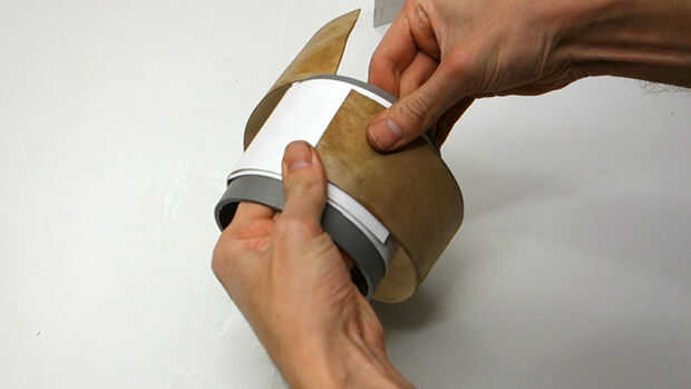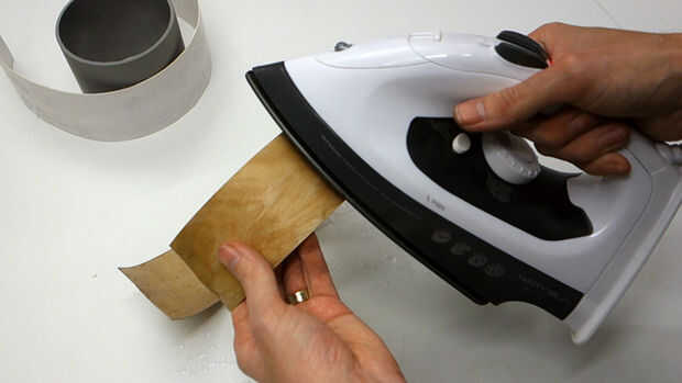 Sin embargo, es más que una forma de crear vapor. Coge una plancha de ropa y el calor y el vapor al máximo y reintroducir el calor en el listón. Entonces puede enrolle alrededor de un cilindro más pequeño para que quepa la parte superior e inferior mejor conseguir. Es mejor si el diámetro del cilindro doblado final es ligeramente menor que la parte superior e inferior, más grande.