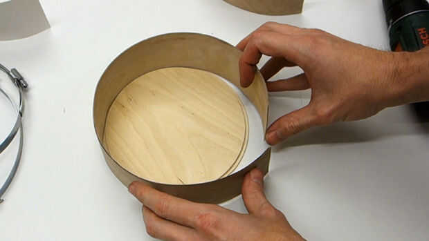 Aquí es un problema que puede correr a través. Si el cilindro que está doblando sus listones alrededor no es lo suficientemente pequeño, la recuperación elástica en la madera resultará en el diámetro de tus listones doblados es demasiado grande para caber en la parte superior e inferior. Simplemente podríamos les resteam y envolver alrededor de un cilindro más pequeño, pero porque ahora son en gran parte cilíndricas ya no encajan en el vapor.
