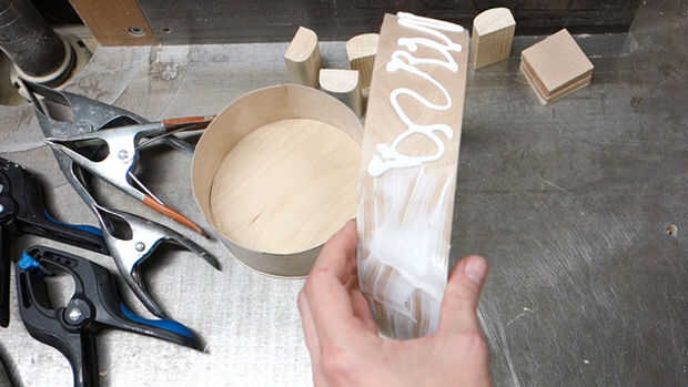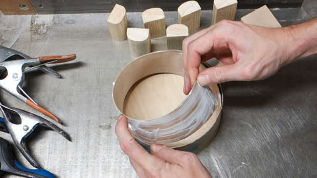 ¿Recuerde que el listón que no resteam? Todavía tiene demasiado grande de diámetro, pero ahora que es perfecto. Este listón se pegan dentro de la kalimba, así que el hecho de que está empujando hacia afuera le ayudará mucho con el pegado.