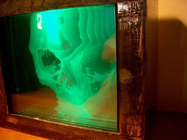 Fue divertido reconstruir un proyecto pasado de este instructable. Este proyecto está abierto a modificaciones y sustituciones. Se podría construir de nuevos materiales o de materiales reciclados y robaban. Mi primera lámpara de cráneo fue hecho con láminas de acetato. Mientras que esto trabajó, la película del acetato cedió un poco. El vidrio para una imagen mucho más ordenada. También puede usar las hojas de acrílico. Tal vez las claras secciones de viejas cajas de CD funcionaría en una pizca. Otra técnica que he pensado sería utilizar una máscara de goma con pegamento en el cristal y cortar el diseño y usar un arenador de la arena a las 'heladas' cada capa en el vidrio.