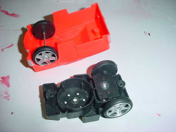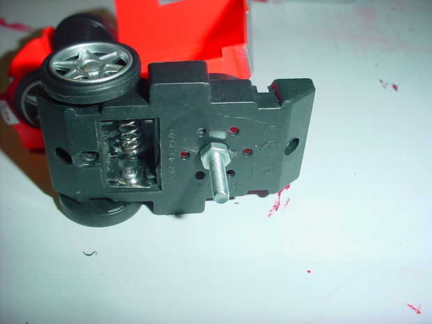 Este coche poco tenía algún tipo de altavoz dentro, no funcionó pero esos agujeros vendría prácticos, algunos cirugía rápida consiguió el coche aparte, las tripas en la caja de componentes y un perno de ejecutan a través del orificio ligeramente agrandado, corrió una tuerca cómodamente mediante una toma de corriente.