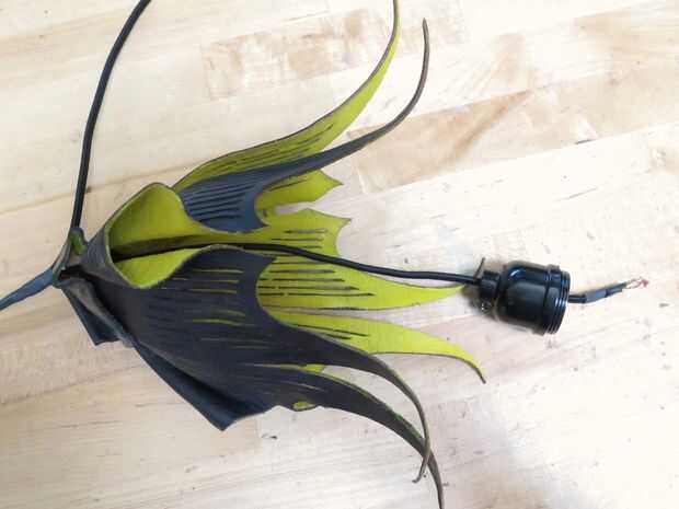 Antes de cablear cada uno había roscado ambos colores en el cable a través del pequeño orificio en la parte superior de las tapas de cuero.
