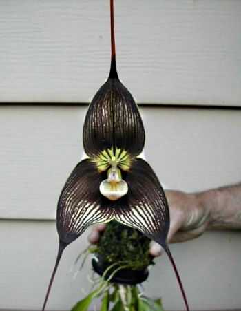 Para el diseño de la forma exacta de mi sombra, miré un montón de increíbles flores en línea para las ideas. Me encanta el colgante trompeta en forma de flores de Datura y la estética un poco espeluznante de algunas orquídeas como esta, que realmente se llama una orquídea Drácula.