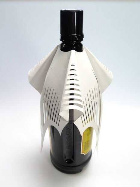 I láser cortar el patrón en papel y probado por drapeado sobre una botella y doblarlo. Tomó unas cuantas iteraciones para obtener la proporción correcta.