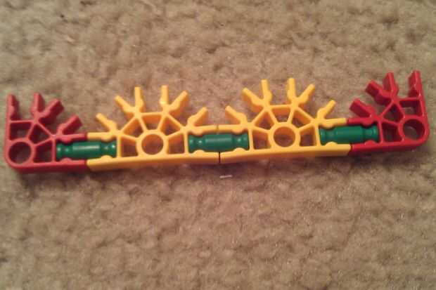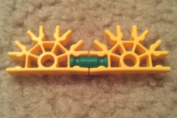 Tomar dos conectores amarillos y conectarlos mediante una barra verde. A continuación, conecte los dos conectores rojo con barras verdes.