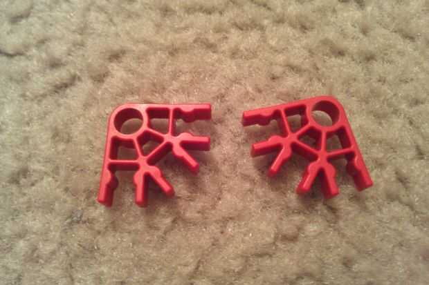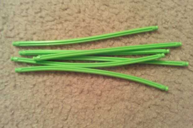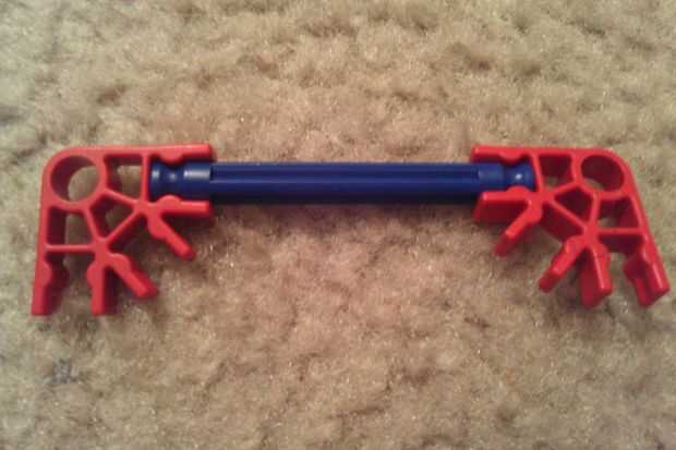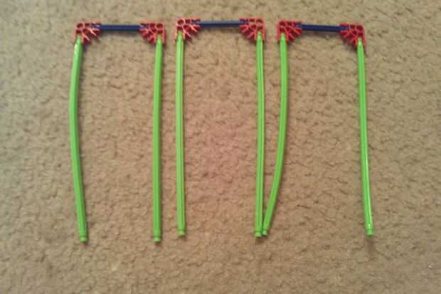 Tomar dos conectores rojo y conectarlos mediante una barra azul. A continuación, instale barras bendy verdes a cada conector rojo. Repita el procedimiento para obtener tres piezas.