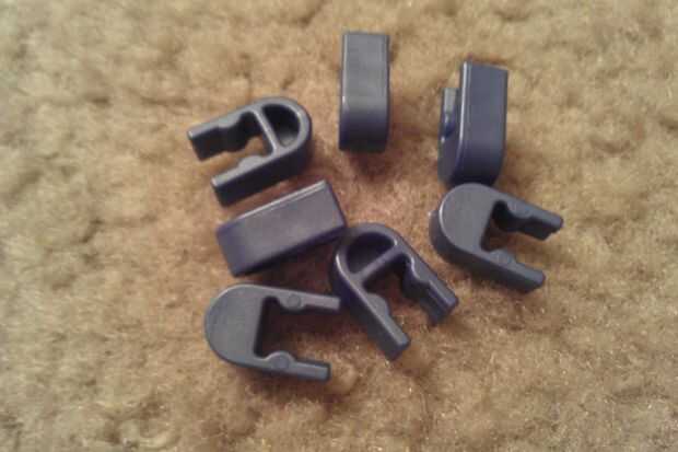 Deslice las piezas hechas en el anterior paso por la parte superior e inferior rojo conectores en cada esquina de la pantalla. A continuación, añadir tapones azules a la parte superior e inferior de cada pieza.