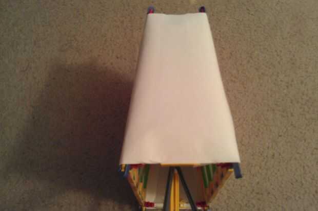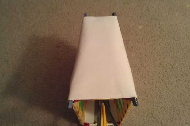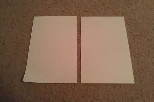 Tomar el tercer trozo de papel y ponerlo en formato apaisado. A continuación, doblar en la mitad "estilo hamburguesa" y cortar por la mitad. Luego, la cinta superior e inferior de cada pieza del P2P a los lados de la pantalla. Finalmente, pegue los lados del papel alrededor de la parte frontal de la pantalla. Repetir en ambos lados.
