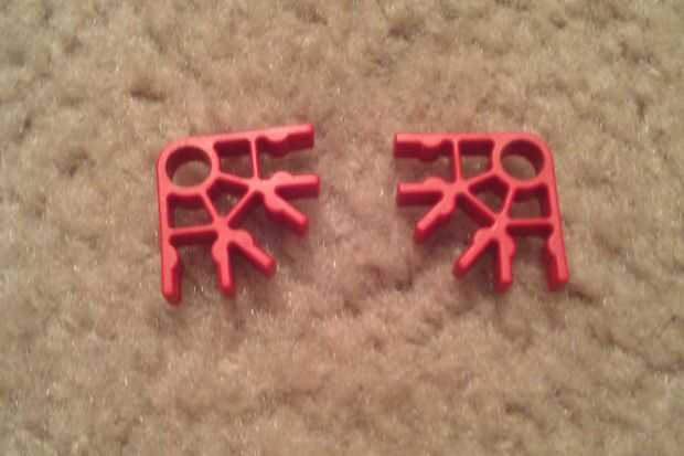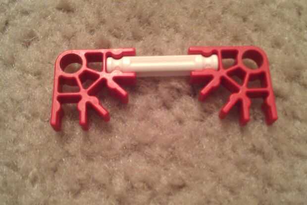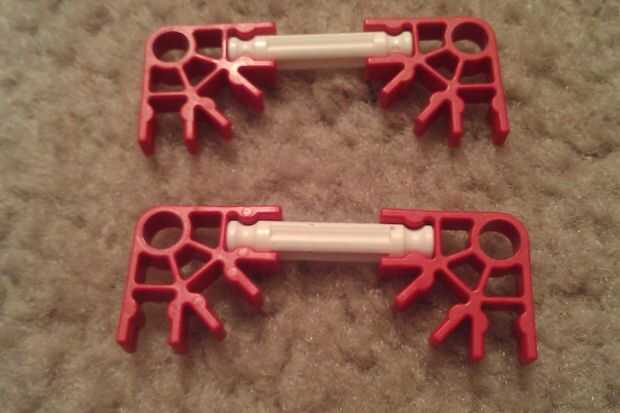 Tomar dos conectores rojo y conectarlos mediante una barra blanca. Repita el procedimiento para obtener dos piezas.