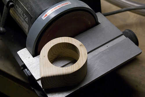C. finalizar su forma y acabado con una lijadora de banda o disco.