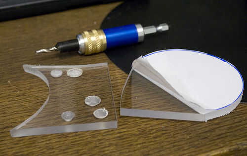B. práctica cortando su avellanado en plexiglás desechos. Se desea que los tornillos para sentarse debajo de la superficie.