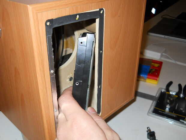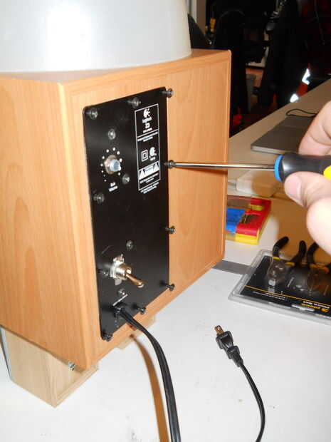 Attach back front a back panels. Poner alguna decoración. Tornillo del panel fron una parrilla de una fuente de energía.