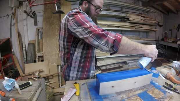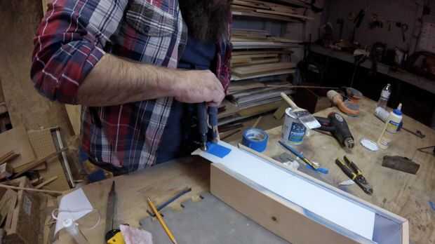Utilicé una pistola de Clavos brad y pegamento para construir la caja alrededor de las hojas de acrílico.
