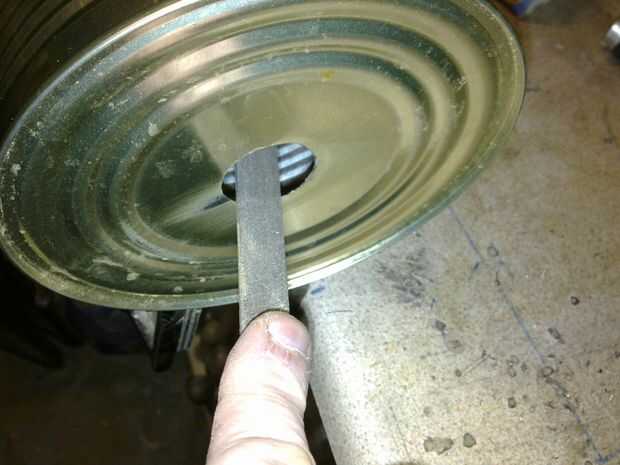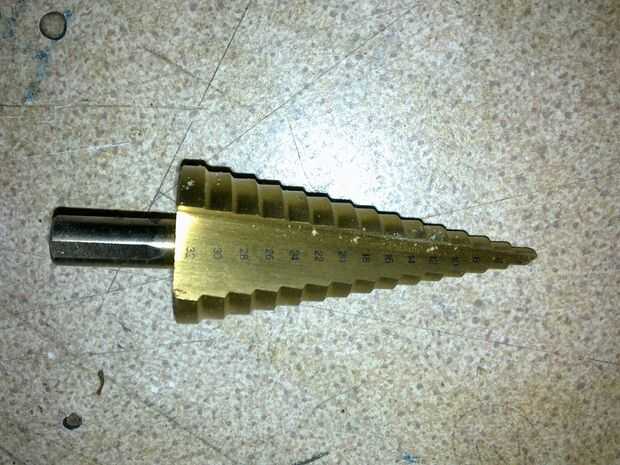 Taladrar un agujero ligeramente más grande que el cuerpo roscado del sostenedor de la lámpara - la mayoría son 30mm. Puede perforar un anillo de agujeros en el interior de un círculo de 30mm y cortar con tijeras o tijera fuerte o un agujero vio o paso taladro si tienes uno, entonces ordenado el bordes con una Lima.