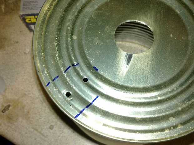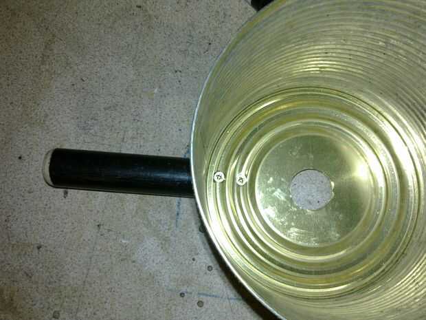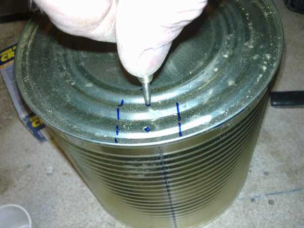 Marcar la posición de la manija en la parte inferior de la lata y taladre dos orificios de 3mm a