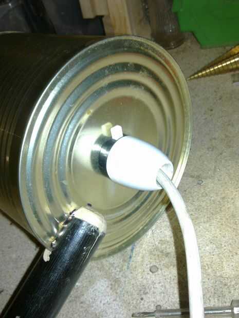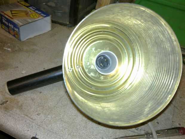 Montar el portalámparas a la lata y quizá usar una abrazadera para sujetar el cable al mango. No incluyo cómo cablear el sostenedor de la lámpara y el enchufe, como si ya no sabes No estoy capacitado para instruir a que usted y usted debe buscar Consejo de alguien que es!