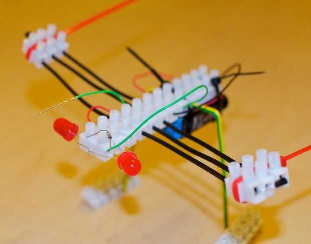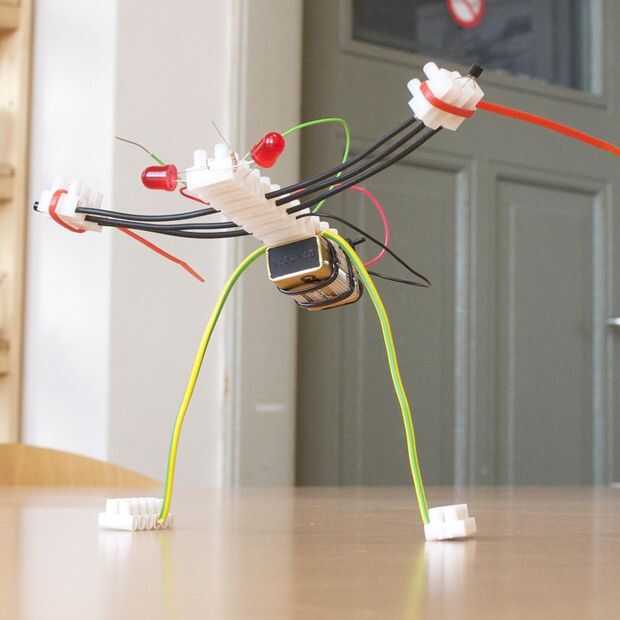 Por eso he querido hacer una versión no-soldadura, bajo costo, una hora de Blinky la mascota Led. Por supuesto, resultó totalmente diferente. Se convirtió en una libélula Blinky... Cerebro electrónico de la libélula es el mismo que Blinky, pero su estructura y aspecto es muy diferente. Este Instructable es para todos aquellos que no tienen la oportunidad en la Maker Faire Groningen para hacer una libélula Blinky.