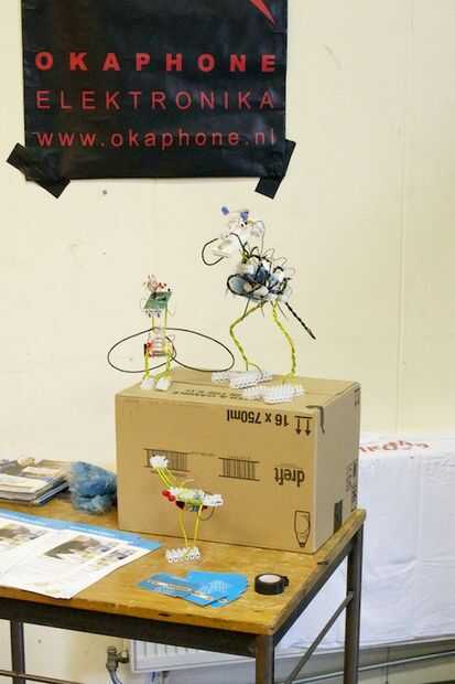 La libélula Blinky fue un gran éxito en la Maker Faire! En cinco horas, la pila de piezas (generosamente patrocinado por la tienda de electrónica de Okaphone) fue drenada completamente y 30 criaturas fueron hechas por los visitantes. Echar un vistazo a las imágenes para una impresión de lo que se hizo.