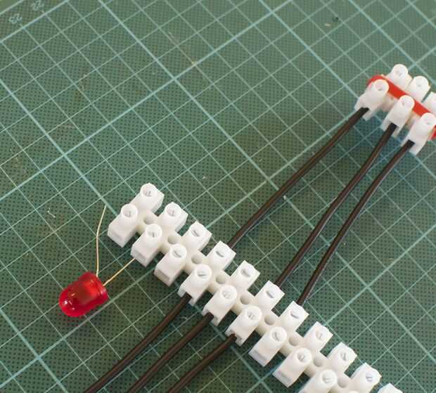 Nota: LED de conducta actual en solamente una dirección, desde "plus-lado" de la batería (ánodo) al lado de la batería"minus" (cátodo). El "plus-lado" de 10 mm led se caracteriza por la cabeza un poco más larga. Cuando estés en duda, solo probar el led con una pila de moneda de 3V.