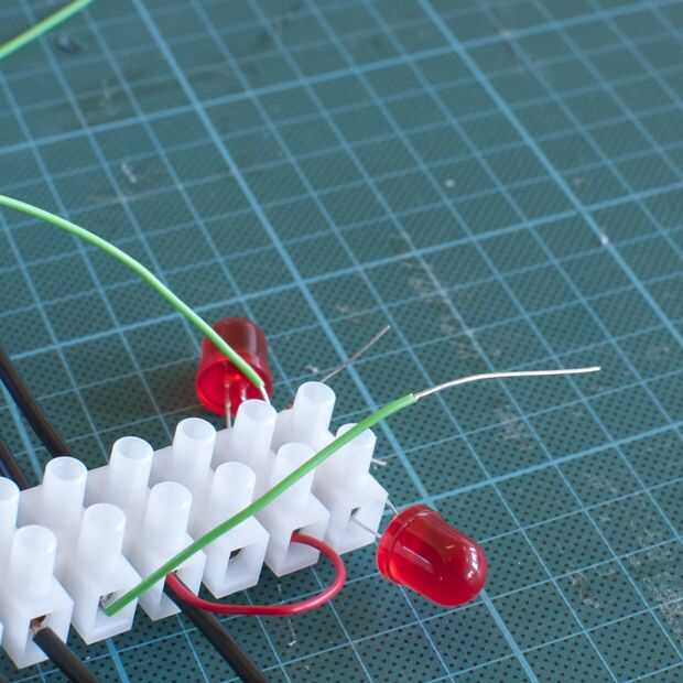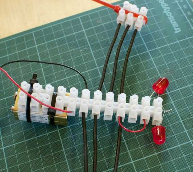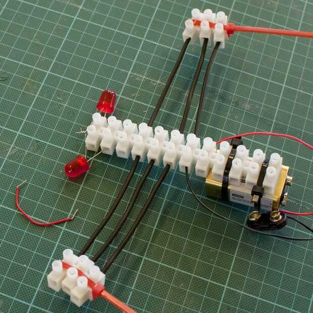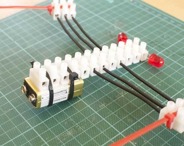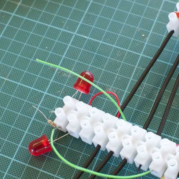 - Fije el cable con la resistencia en el primer trozo de conector, en el lado izquierdo.