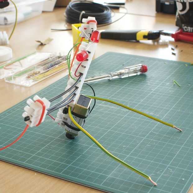 Si todo funciona bien, todo lo que necesitas ahora es las piernas! Los hice de alambre eléctrico y los pies con conectores. Acaba de encontrar un trozo de conector libre para fijar las patas.