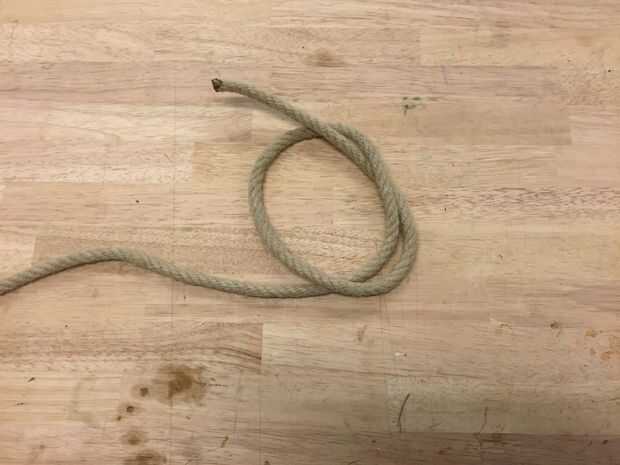 3. Lo más importante primero que tienes que hacer es deslizar la cuerda a través de la tabla de madera circular.