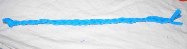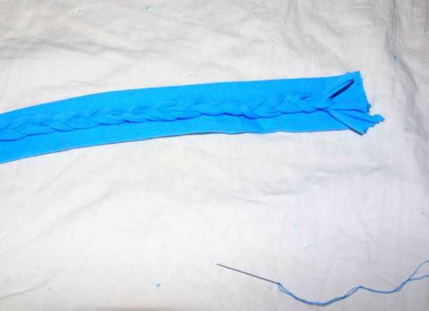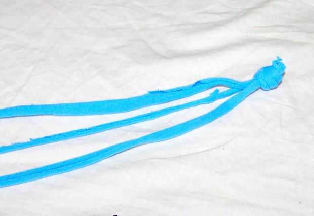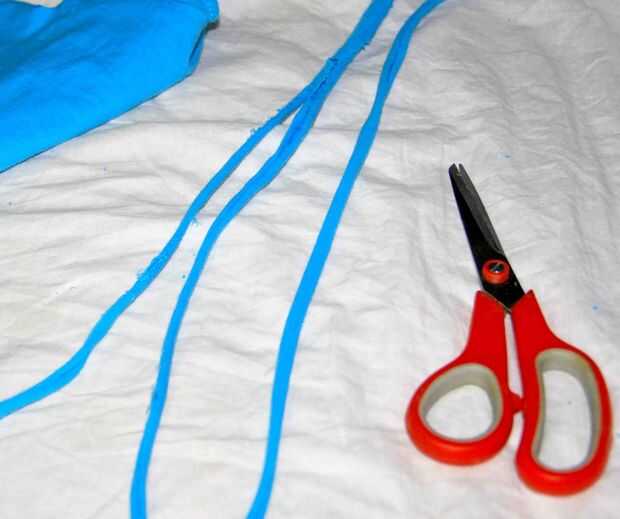 Cortar 3 trozos de las tiras de la camiseta y su longitud debería ser 2 pulgadas extras desde el tamaño original de la banda.