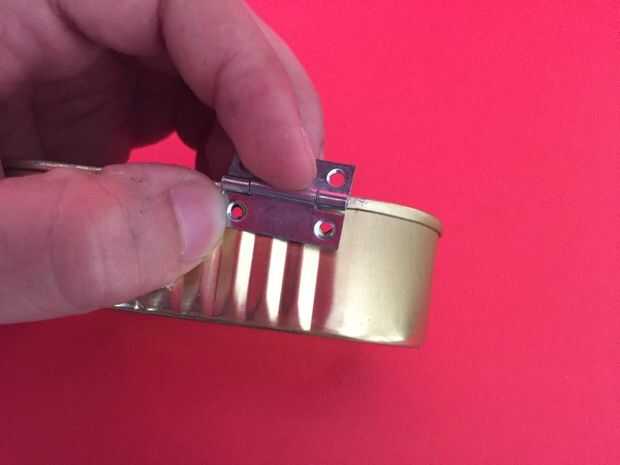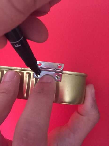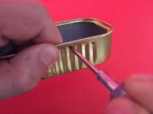 Para cortar la lata se puede utilizar un taladro, pero me decidí a hacer los agujeros sólo mediante el uso de una perforadora y un poco de fuerza.