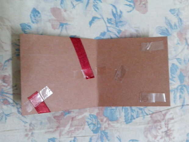 Usando cinta de doble cara en el interior de la tarjeta marrón, pegarse los dos lados. Abre la tarjeta naranja, escribe tu mensaje "¡ feliz cumpleaños!" "¡ gracias!" .. .lo de siempre te gusta. Incluso puede utilizar la cinta diagonal en la tarjeta para conectar algunos dulces o cupones a la tarjeta.