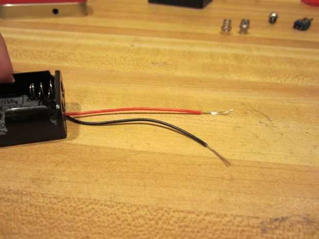 Tomar su soporte de pilas AA. Corte los cables hasta la mitad. (Mucha gente deje el cable negativo negro sin cortar. Sinceramente no importa si haces o no.)