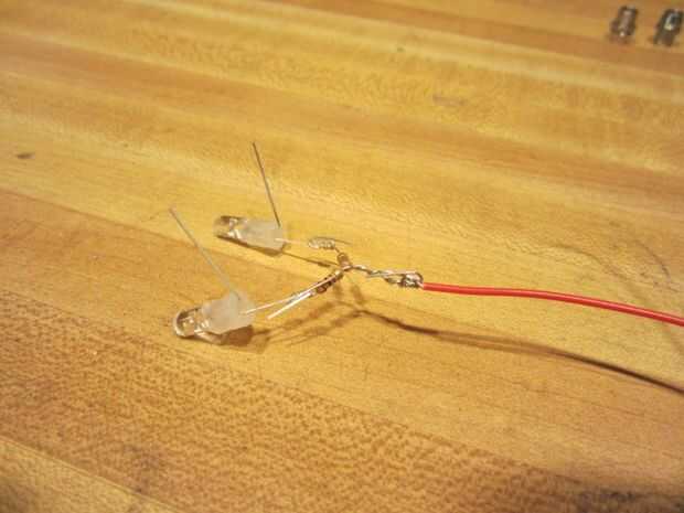 Luego tomar el alambre rojo y gire junto con el back-end de las resistencias. (La pierna de la parte inferior de la Y hecho.)