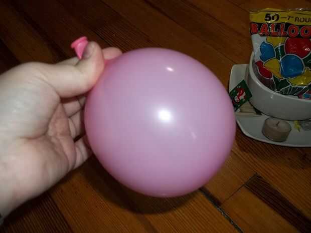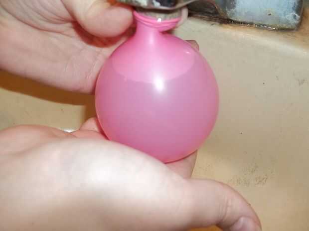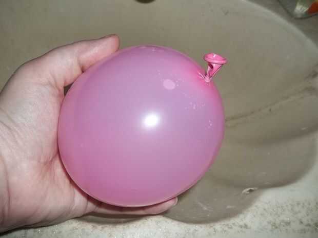 soplé el balón primero a estirarlo.  Entonces llena como un globo de agua.  Intente como poco aire en el balón como sea posible al hacer el nudo.  Esto ayudará a su linterna de hielo que como en la parte superior como sea posible.