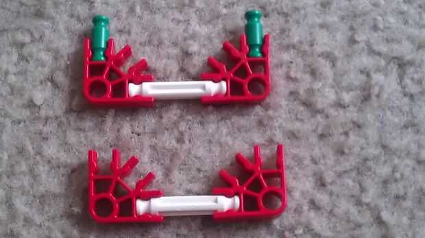 Construir dos de las piezas que se muestran. En uno, añadir barras verdes. Agregar a la pieza principal. Asegúrese de que las piezas con las barras grises son del mismo lado.