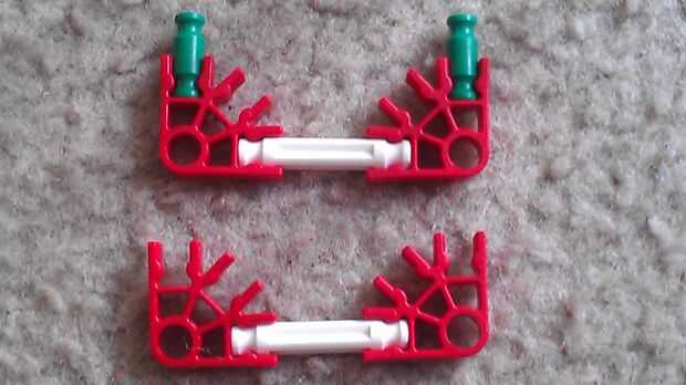 Construir dos de las piezas que se muestran. En una sola pieza, añadir dos barras verdes. Agregar a la pieza principal.
