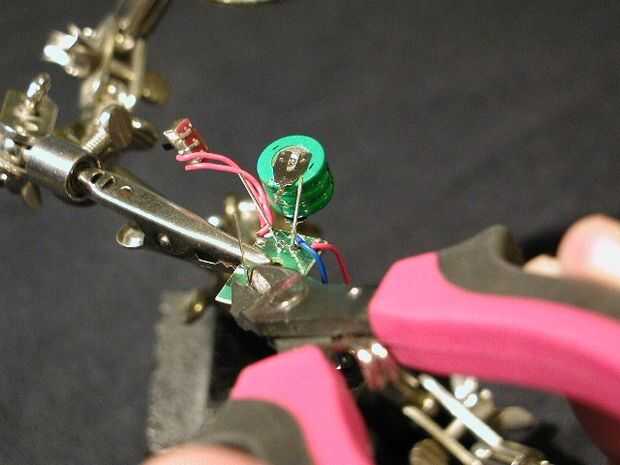 Una vez que los cables se sueldan y los LEDs sentado, utilizar un pequeño par de tijeras para recortar las puntas.
