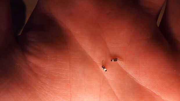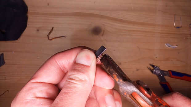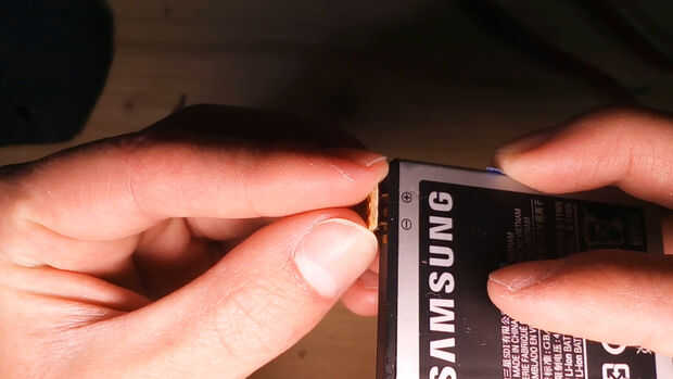 Puede utilizar las ranuras de arduino para hacer dos pines de la batería. Simplemente corte dos pedazos de metal hacia fuera y doblarlos como se muestra en las fotos. Después de esto usted cuidadosamente soldarlos en un pequeño trozo de placa de circuito para que tengan una distancia adecuada para encajar los pasadores en la batería. No usar demasiado la lata, de lo contrario se endurece los pines y por lo tanto que sean capaces de romper.