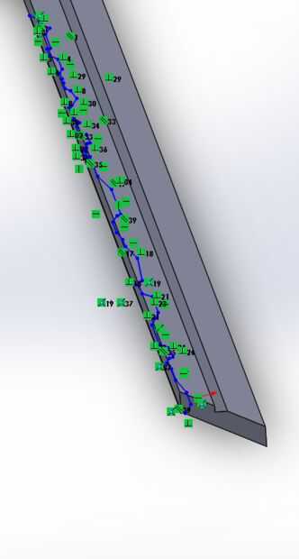 A continuación usted hará un patrón rígido al azar en la superficie de la tecla para hacer la línea de salida de los dientes. Asegúrese de que la línea comienza y termina en el borde mismo de la clave para que pueda crear un corte liso. Una vez haya terminado el uso de la línea la función de extrusión corte para terminar el diseño.