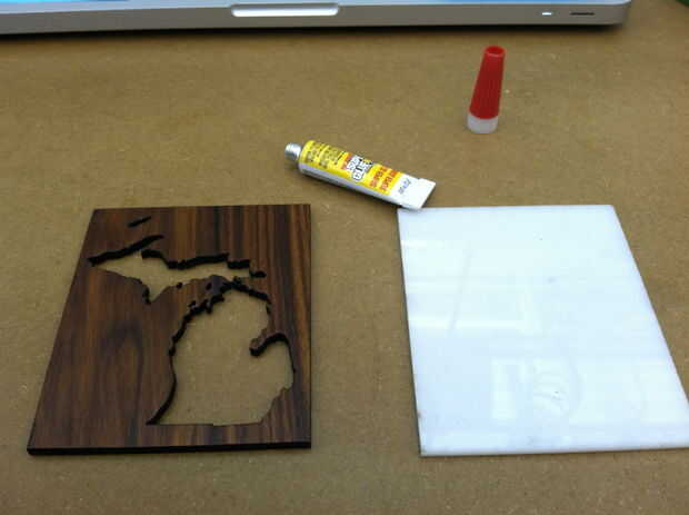 ¡ Fuera el pegamento! Pegue la madera para el acrílico. Y dejar secar.